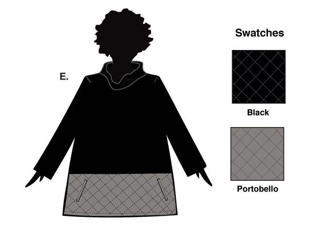 I love this piece especially when I wear it with my Spantaloons. The body is from our soft Sunday Morning fabric, the turtle neck is loose enough for comfort, high enough for style…the body is a little rounded and the quilted band has two welt pockets just where they need to be.