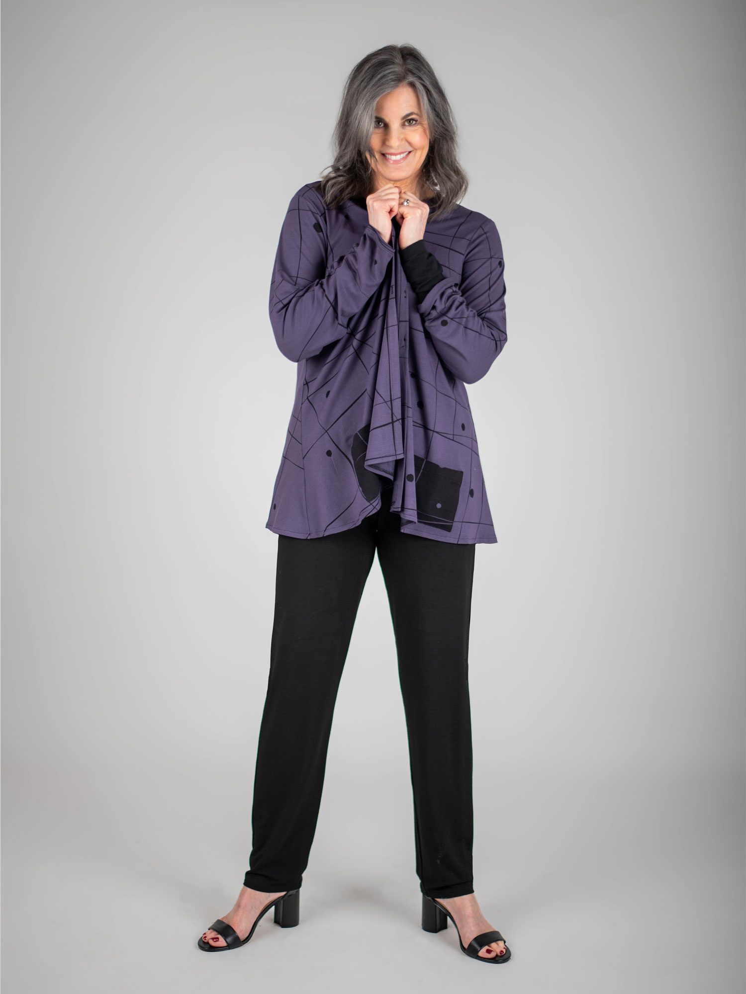 If leggings aren’t to your liking and wider legs aren’t what you’re looking for, we’ve made this Pencil Pant just for you. It’s a straight, narrow but definitely not tight, pant with a 15” ankle opening with a 41” outseam.